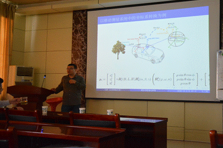 韓勃老師簡單地介紹了石波老師的研究方向和最新成果后,石波老師便開始了本次匯報。匯報主要從四個方面來展開,第一部分是關于慣性技術的定義,這是一門涉及多學科交叉的高新尖端技術,又涉及現代武器系統中的一項核心技術;第二部分是關于慣性導航系統的理論介紹,石老師以移動測量系統中的坐標系轉換為例,從牛頓經典力學的角度入手,介紹了慣性導航系統中的兩個主要器件——陀螺儀和加速度計;第三部分是慣性導航系統的建立,加速度計和陀螺儀分別起到測量單軸的比力和測量一個軸向轉動角速率的作用,采用了IMU作為導航系統的傳感部件,石老師以二維慣性導航為例講解了慣性導航系統工作的原理;第四部分是組合導航的意義與應用,具有較高的短期測量精度的INS和具有長期精度的GPS具有較好的互補特性,二者集成后可輸出高頻率的導航參數信息,并且在長、短期的導航過程中均具有較高的精度。論壇最后,石波老師從慣性導航系統的應用角度講解了多平臺測量系統在公路基礎建設中的各種應用,并對學生們提出的問題進行了詳細地解答。