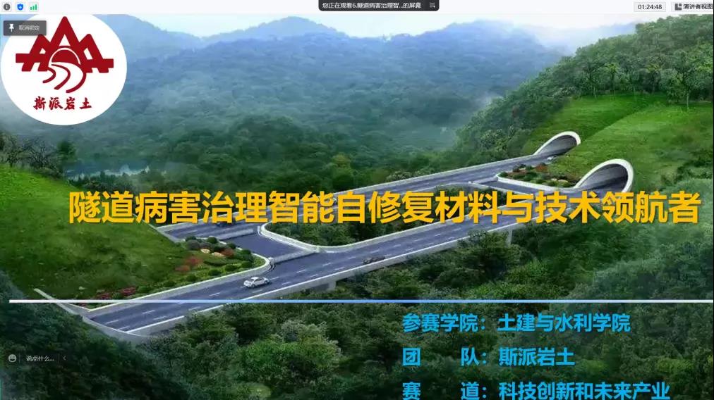 答辯會上,各參賽隊伍緊密結合專業特點,以低碳材料、地質勘探、房屋搭建、廢土回收、隧道病害等在土木工程以及地質勘測經常出現的問題為背景,提出解決方案、研發相關產品、設計合適的商業模式、申請相應的專利。在隧道病害的恢復問題方面,斯派巖土團隊設計了自愈型材料,看似簡單的材料,其實內置了微米級的膠囊,可自行愈合0.5mm的裂縫,效果顯著;在環境治理和可持續發展方面,維態綠色材料團隊從生態型固廢膠凝材料及產業化應用入手,深入研究如何將固廢資源化利用……產品設計介紹結束后,各參賽隊伍結合產品特性,嚴謹地設計了經商方案,努力提高公司收益、推動產品應用。