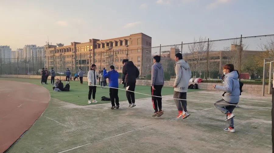 首先是跳大繩,兩位同學負責搖繩,其余同學依次跑進去跳繩。隨著同學們逐漸熟悉節奏和規律,過程變得越來越連貫。