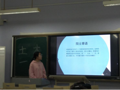 晚7點,會議正式開始,王憬慧首先向同學們詳細介紹了中國工程院院士——孫偉,帶領同學們了解她的生平簡介,與同學們分享孫偉院士的典型事跡。孫偉院士桃李滿天下,為國家培養了一大批優秀人才,生病期間仍不忘關心學校發展和學科建設,在科研領域奮斗一生。通過介紹,同學們對孫偉院士有了更加深刻的認識。之后,班級組織播放了電影《周恩來的四個晝夜》,同學們認真觀看。該電影以五十年代末,六十世紀初大躍進為背景,講述了周恩來深入革命老區調研四個晝夜的故事,展現了老一輩領導人的務實和為人民服務的精神以及那個年代人民的質樸純真。觀影結束后,進入自由發言環節,同學們表示,先輩們的奉獻精神令人欽佩不已,正是因為他們的艱苦奮斗才有了現在的美好生活,每個人都應該珍惜當下的生活,以先輩們為榜樣,勤奮刻苦,胸懷理想,不懈奮斗。