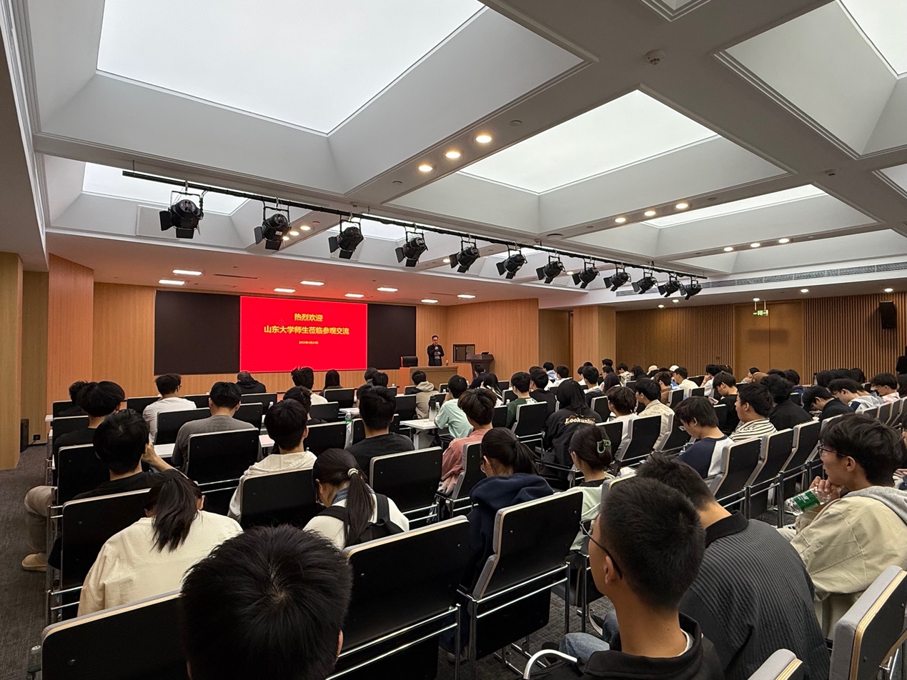 活動伊始,山東省建筑設計研究院有限公司總經理王寶峰、技術質量部部長張繼偉對師生們到來表示熱烈歡迎。在工作人員的引導下,同學們相繼參觀山東省建筑設計研究院展廳、作品展與工作環境。在展廳,同學們詳細了解山東省建筑設計研究院的總體概況、發展歷史與代表性設計作品。從五十年代的手工繪圖工具到現代數字建模技術,展覽生動展現了建筑行業發展的脈絡,激發了同學們對專業演變與創新實踐的濃厚興趣。面對重要地標項目、醫療建筑成就和國際合作案例的成功設計,同學們感受到省院在全過程設計咨詢、科技創新和專業領域的優勢,進一步加深了對建筑設計理念、技術實現與功能創新的認識。張繼偉部長帶領師生們一起觀看了省院企業宣傳片和新辦公樓數字孿生運維平臺演示,直觀感受前沿數字技術在建筑設計與智慧運維中的應用場景。通過真實案例演示,大家體會到數字孿生技術在提升建筑運營效率、保障建筑安全中的重要作用,拓展了對未來建筑行業發展的理解。