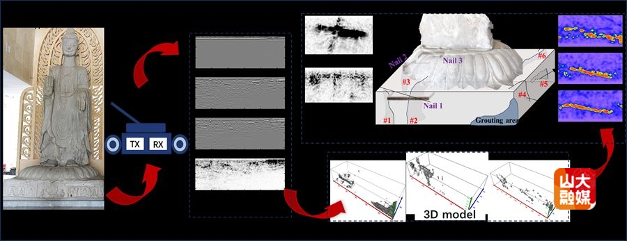工程軟件系孫懷鳳教授團隊,數智考古與中華文明特色分中心、文化遺產研究院李力副教授團隊與山東省文物保護修復與鑒定中心、青島市博物館開展合作,在國際權威期刊Journal of Cultural Heritage在線發表研究論文“Decoding the stone Buddha: Three-dimensional ground penetrating radar attribute insights into cracks and restoration history of Sumeru throne”(JCR Q1、中科院藝術學一區)。澳門足球博彩網上投注