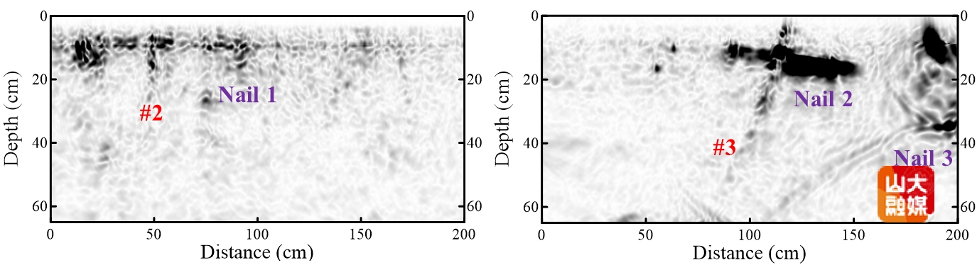 圖2 石佛造像內部鋸釘和裂縫的成像結果