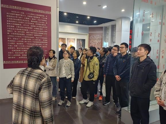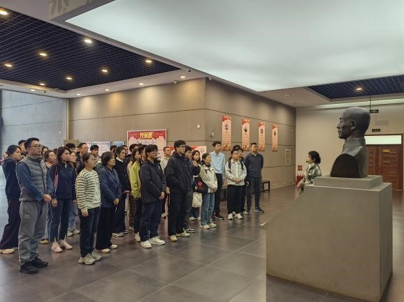 首站,師生黨員來到張自忠將軍紀念館。這座為紀念張自忠將軍殉國50周年而建的場館,通過1200余件文物、400余幅圖片及場景復原,完整呈現了將軍從“儒將”到“抗日名將”的壯闊人生。在“長城抗戰·喜峰口大捷”展區,泛黃的家書、帶彈孔的軍裝、繳獲的日軍武器,無聲訴說著將軍“寧為戰死鬼,不做亡國奴”的血性;“臨沂大捷”沙盤前,講解員動情講述將軍率部以劣勢裝備擊潰日軍精銳的細節,“三天三夜未合眼,大衣被彈片劃破七個洞”的描述,讓在場黨員動容;最令人記憶深刻的是將軍犧牲前寫給副官的絕筆信:“我力戰而死,自問對國家對民族可告無愧”。張自忠將軍的鐵血丹心,使黨員們深刻理解了“今日之安,皆因昨日之犧牲;吾輩之責,當護明日之盛世。”