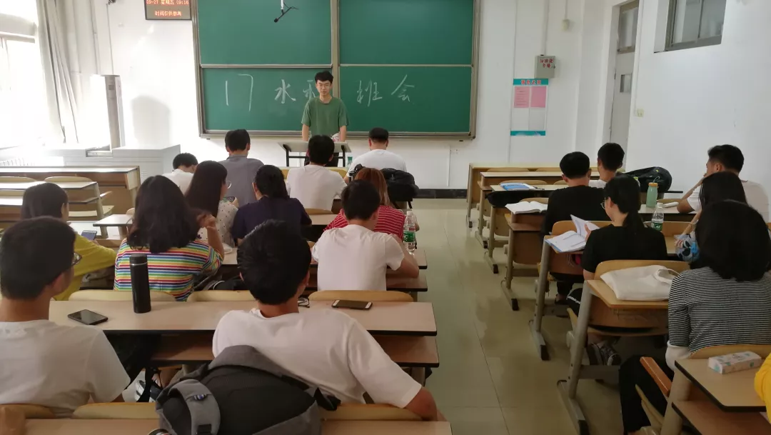 17級水利水電班于興隆山校區教學群樓召開班會。班長郭章潮主持了本次會議,水電班全體同學到場參會。